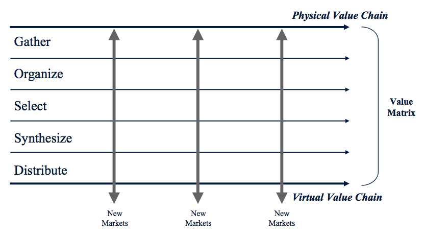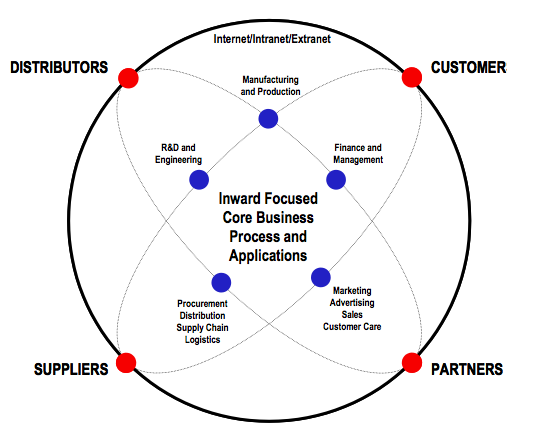 Dunia maya secara cepat berkembang sejalan dengan majunya teknologi informasi yang menawarkan produk-produk barunya seperti e-commerce dan bentuk-bentuk e-business lainnya. Kenyataan ini berarti bahwa perusahaan harus memiliki kemampuan untuk bersaing di kedua dunia tersebut. Esensi dari persaingan yang ada pada dasarnya terfokus pada proses penciptaan produk atau jasa bagi pelanggan. Proses yang dikenal sebagai ++ value creation+++ tersebut memiliki karakteristik yang berbeda pada masing-masing dunia. Di dalam dunia nyata, aktivitas atau proses penciptaan produk atau jasa biasanya melalui beberapa tahap generik yang diistilahkan sebagai ++ value chain+++ oleh Michael Porter. Ada dua tahapan besar yang biasa dilakukan, masing-masing pada sisi ++ supply+++ dan sisi ++ demand+++.