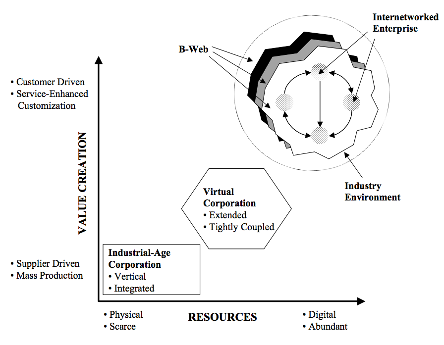 Keberadaan B-Web (Business Web) untuk pertama kalinya diidentifikasikan oleh Don Tapscott, David Ticoll, dan Alex Lowy dalam bukunya ++ Digital Capital: Harnessing the Power of Business Webs+++ melalui serangkaian kajian yang dilakukan terhadap berbagai fenomena bisnis yang dijumpai di dunia maya. Secara spesifik, B-Web didefinisikan sebagai ++ kumpulan atau konsorsium antara beberapa perusahaan yang saling bekerja sama (memiliki ketergantungan) di dunia maya untuk menciptakan produk dan jasa yang bernilai tinggi (high value) untuk ditawarkan kepada calon pelanggan (customers)+++.