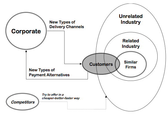 Praktisi bisnis biasa mengklasifikasikan lingkungan usahanya berdasarkan jenis industri, seperti: perbankan, perminyakan, pertambangan, telekomunikasi, transportasi, asuransi, dan lain sebagainya. Dasar dari penggolongan tersebut biasanya ditentukan oleh bisnis inti (core business) yang digeluti, yang tercermin pada produk dan jasa yang ditawarkan perusahaan kepada konsumennya. Di dalam era ekonomi baru (digital economy), klasifikasi berdasarkan industri menjadi sulit dan kurang relevan untuk dipergunakan. Dikatakan sulit dilakukan karena adanya fenomena jejaring (internetworking) antar berbagai perusahaan untuk saling bekerja sama dalam proses penciptaan produk atau jasa tertentu, dimana dalam kenyataannya beragam perusahaan tersebut memiliki bisnis inti yang berbeda.