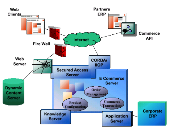Berbeda dengan arsitektur perangkat keras dan perangkat lunak konvensional yang dibangun oleh perusahaan berdasarkan dua pilihan utama, yaitu membeli paket jadi atau membuat sendiri dari nol, di dalam membangun infrastruktur e-commerce dipergunakan kerangka arsitektur yang terdiri dari berbagai building blocks. Entiti-entiti blok ini seperti layaknya permainan anak-anak lego dapat dengan mudah di-++ copot-copot+++ dan dipasang sesuka hati sesuai dengan keinginan dan kebutuhan, untuk mendirikan sebuah bangunan arsitektur sesuai keinginan. Salah satu standar kerangka arsitektur e-commerce yang mempergunakan pendekatan ini dikembangkan bersama oleh Alta Software dengan Cisco Systems seperti yang digambarkan di bawah ini (Marshak et al, 1998).