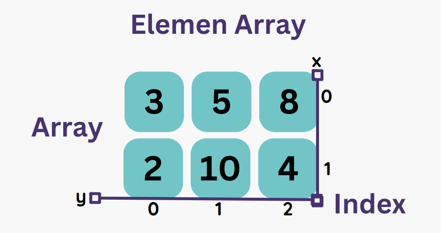 Karakter '\t' adalah karakter khusus untuk menampilkan tab (spasi sebanyak tab) untuk memisahkan setiap elemen matriks. Untuk memahami cara mengakses elemen array dua dimensi, silakan berlatih dengan menuliskan kode di atas. Selanjutnya ikuti video berikut untuk berlatih secara langsung membuat array 2 dimensi, mengisi elemen array dan mencetak isi elemen array. Jangan lupa, practice makes perfect!