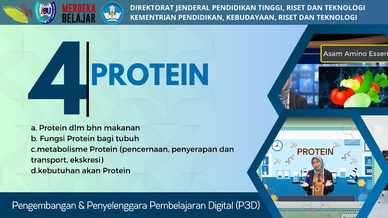 Hallo Semuanya, selamat datang di pertemuan keempat dengan materi protein. Kata protein pastinya tidak asing ditelinga kita. Kita sering mendengar istilah diet tinggi protein bagi orang yang ingin meningkatkan massa otot, mengurangi nafsu makan (karena protein dapat membuat perasaan kenyang lebih lama), atau mengurangi lemak tubuh. Dimana asupan protein dapat ditemukan dalam berbagai makanan, termasuk daging, ikan, telur, produk susu, kacang-kacangan, dan biji-bijian lhooo…. Kenapa kita perlu asupan protein? ternyata konsumsi protein yang cukup dalam makanan, penting untuk menjaga kesehatan tubuh dan menjalani fungsi-fungsi vital yang diperlukan untuk kehidupan sehari-hari.