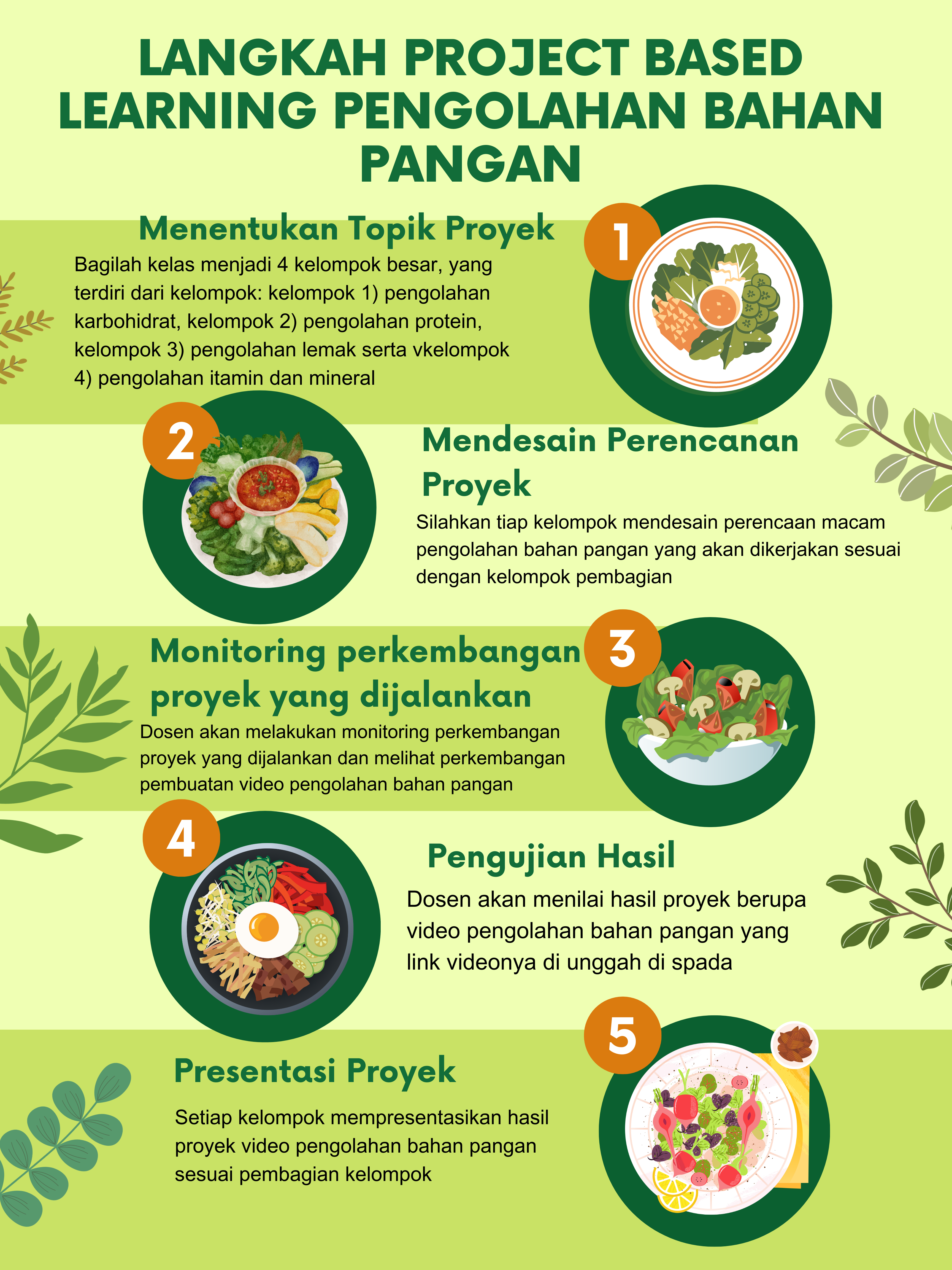 Bagaimana? Setelah kalian melihat dan menyimak video pengolahan bahan pangan, Sudah paham kan tentang pengolahan bahan pangan. Nah untuk pertemuan berikutnya ada tugas berupa proyek pengolahan bahan pangan bersama kelompok ya…Berikut ini adalah langkah-langkah proyeknya..