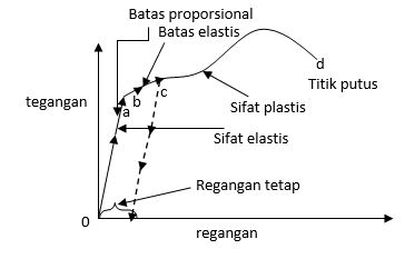 Apabila suatu jenis digambarkan pada suatu diagram, maka diperoleh kurva yang bntuknya berbeda-beda yang sesuai dengan bahan yang diuji tegangannya. Gambar di atas menunjukkan bentuk umum kurva tegangan dari suatu benda. Kurva itu menunjukkan pertambahan panjang suatu benda atau bahan terhadap gaya yang diberikan padanya. Sampai suatu titik yang disebut proporsional.